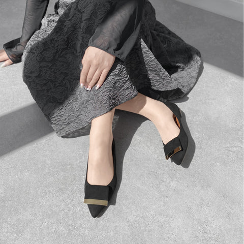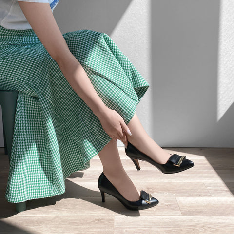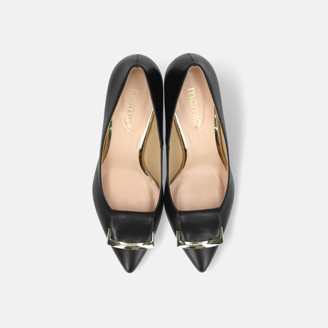15% OFF: 2024SS: Almond toe pumps with buckle ribbon (lt7001) Black