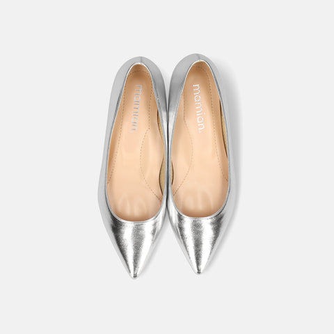 10% OFF: 2024SS: iCoN COLORS: Pointed Toe Smooth Flat Shoes (C20143) Silver