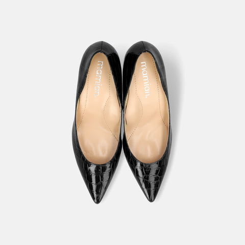 15% OFF: iCoN COLORS: Pointed toe croc embossed pumps (C76534) Black CR