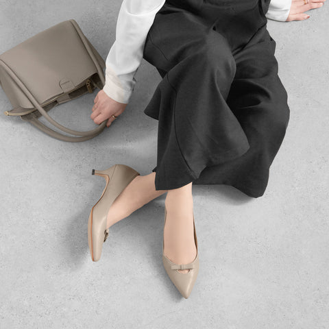 10% OFF: 2024SS: iCoN COLORS: Pointed Toe Smooth Pumps (C57173) Greige