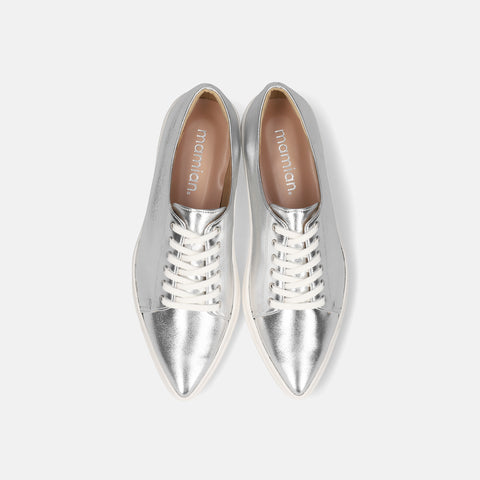 2025AWBI:ポインテッドトゥ レースアップ スニーカー(m1001)シルバーグリッター/C